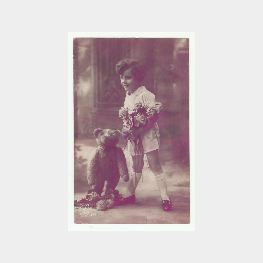 Be the first to review “A Little Boy, Vintage PC, Flowers and Teddy Bear, French-Purple Print”