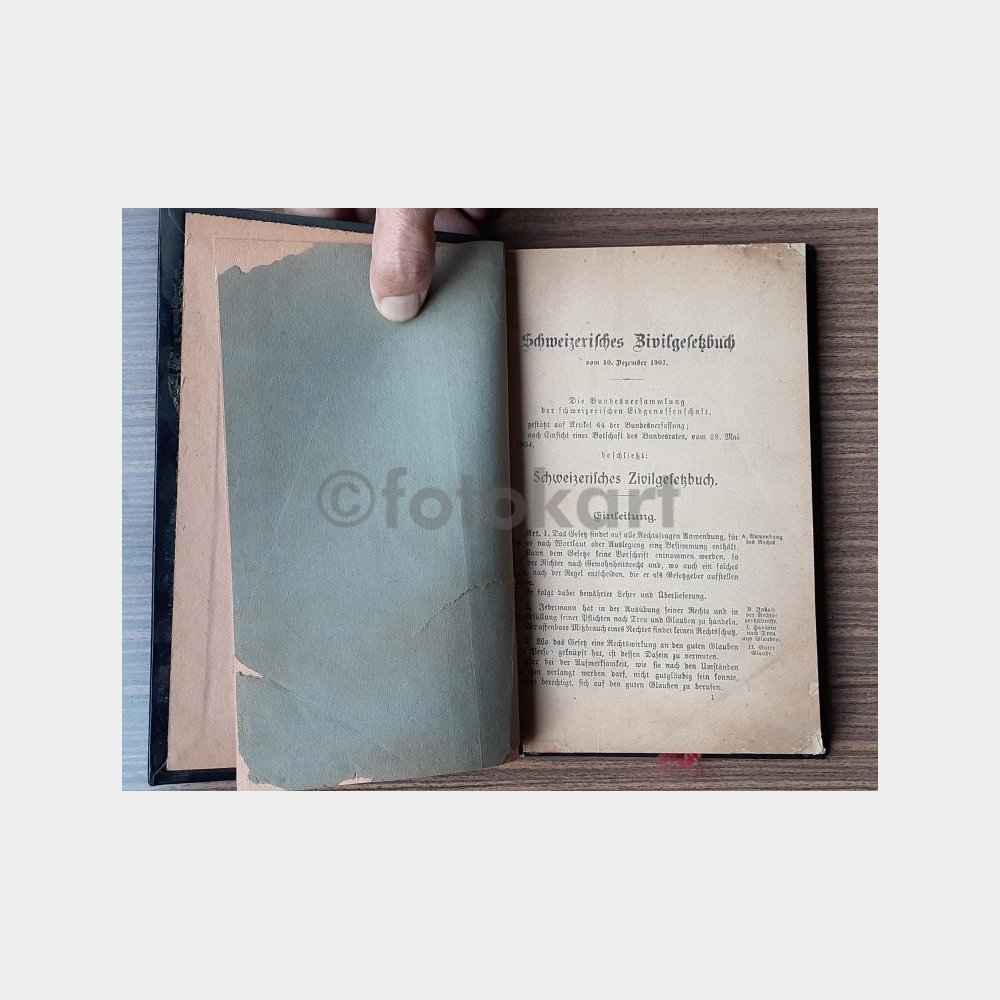 Notes: Schweizerisches Zivilgesetzbuch. 227 pages, German. Probably one of the first publications. The Swiss Civil Code is a portion of the second part of the internal Swiss law that regulates the codified law ruling in Switzerland and relationship between individuals. It was first adopted in 1907. (Wikipedia)