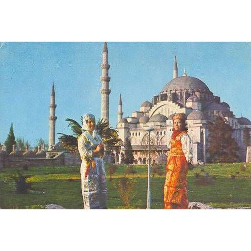 Süleymaniye Camii ve Yerel Giysili Kadınlar Kartpostal