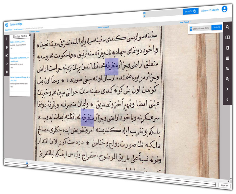 - Osmanlı Türkçesi ile basılmış her türlü eser içinde tam metin arama yapma,
