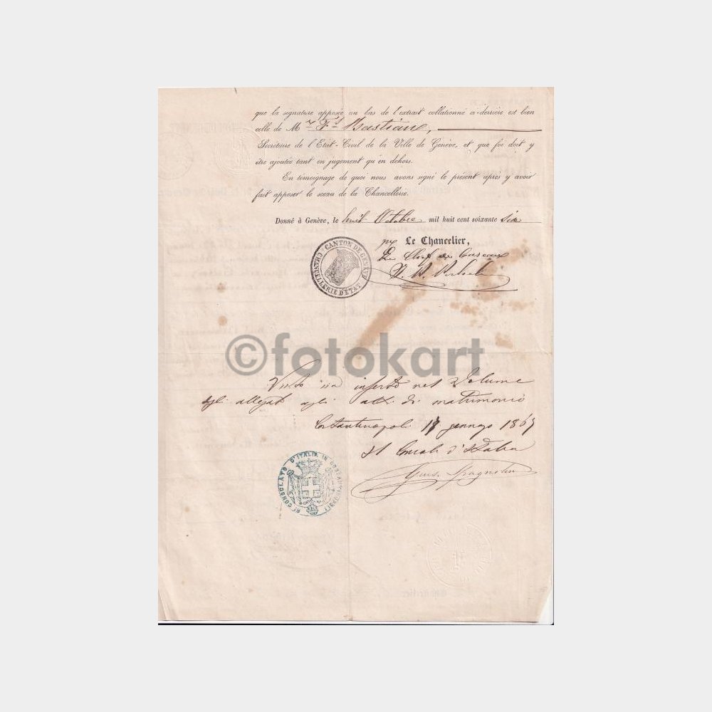 22 x 28 cm, Fransızca, İtalya Konsolosluğuna ibraz edilmiş belge.