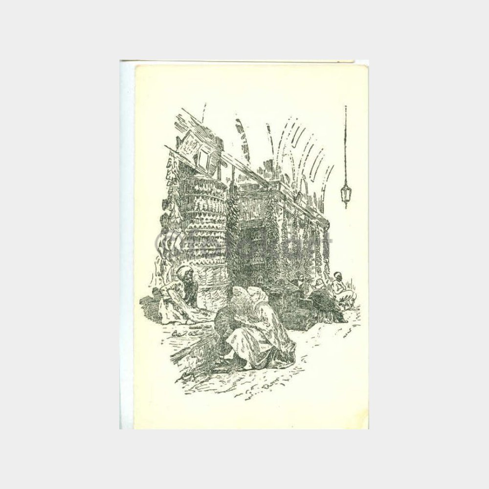 Ünlü İtalyan illüstratör Cesare Biseo’nun (1843-1909) desenlerinden alınma kartpostal. İstanbul Yayınevi, Güzelişi Basımevi Konu : Büyük Çarşıda Kavaflar-1870
