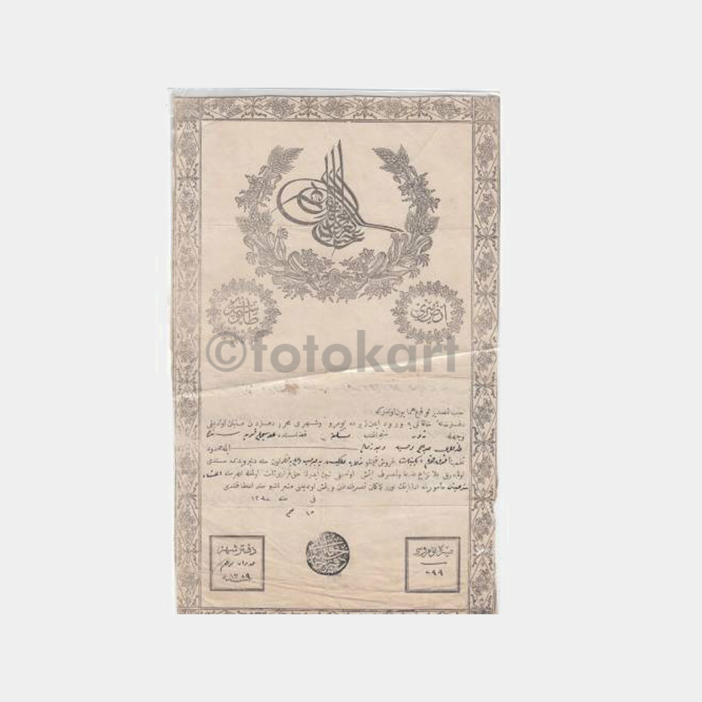 32 x 20 cm Osmanlı tapu belgesi, nadir. 1872 yılı belgesi.
