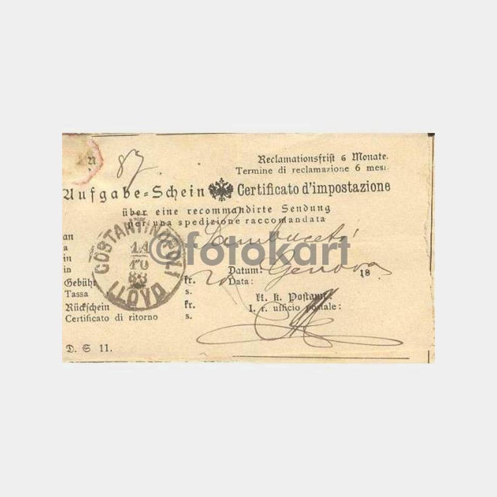 1883 Costantinopoli Lloyd Damgalı Üç Makbuz