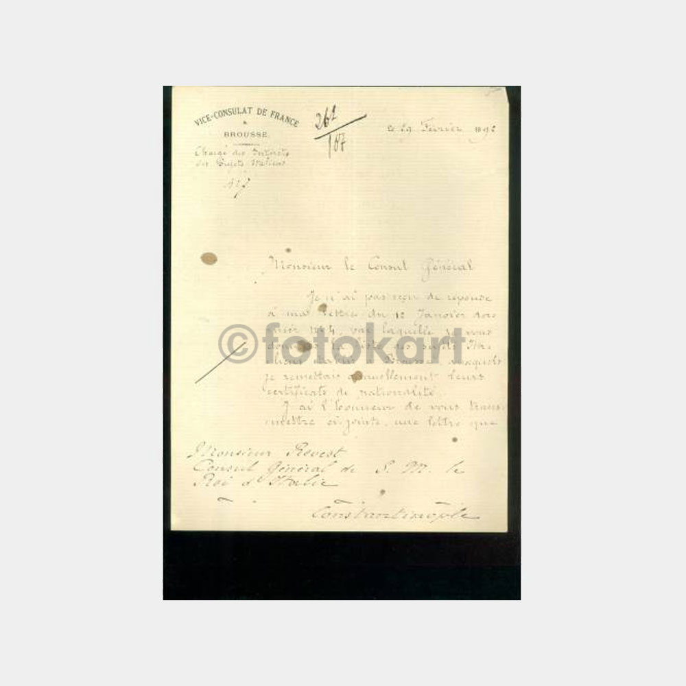 Çok temiz. “Bursa – Fransız Kons.” yazısı var.