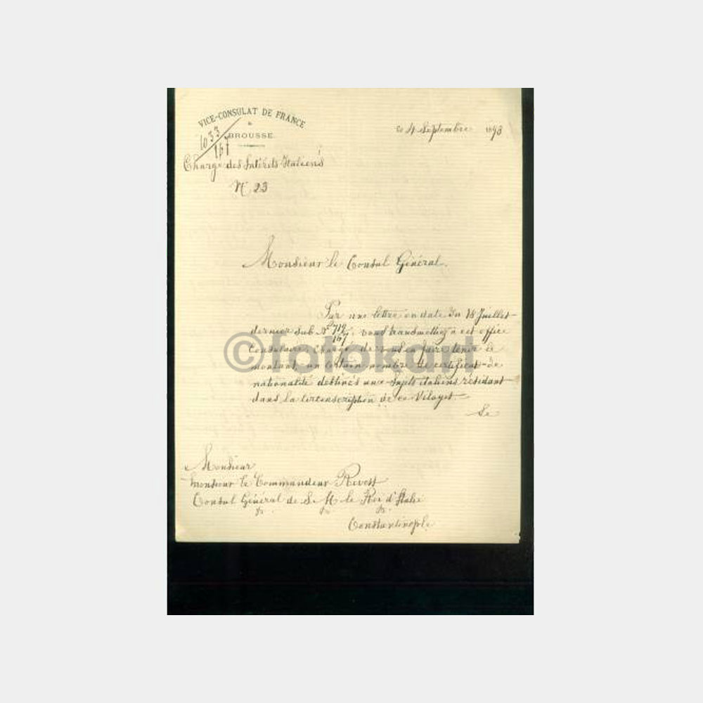 1893 Bursa – Fransız Konsolosluğu Yazısı