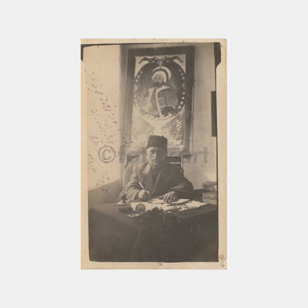 14 x 9 cm ebadında, arkası yazısız fotoğraf, arka planda bir padişah resim çerçevesi, yan kenar yazılı araştırılacak.
