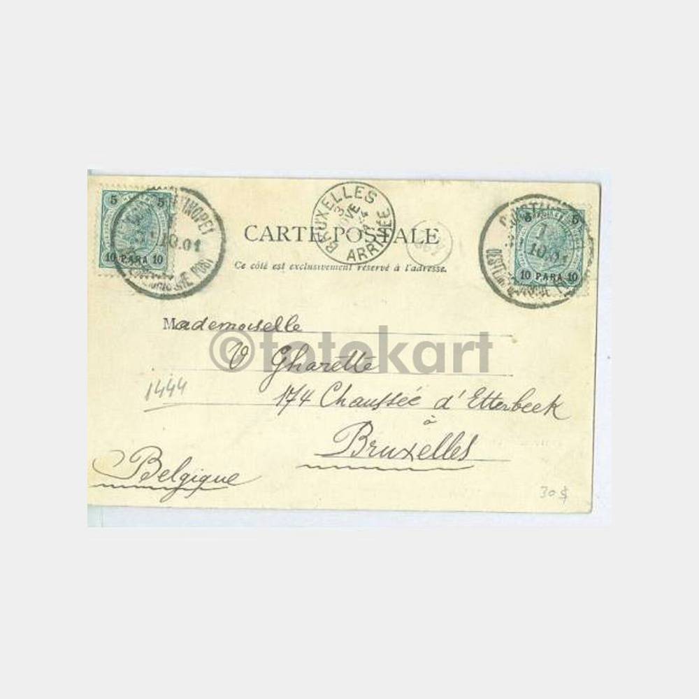 Arka yüzünde İstanbul, alman levant postaları 2 adet damga ve Brüksel arrivee varış damgası 31. 10. 1901 tarihli