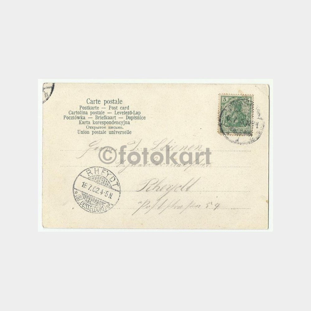 Notes: Dusseldorf Exhibition 1902 was a major national exhibition on an area by the Rhine which covered over 130 acres and had vast numbers of exhibits to showcase German industry. (prints-online.com)