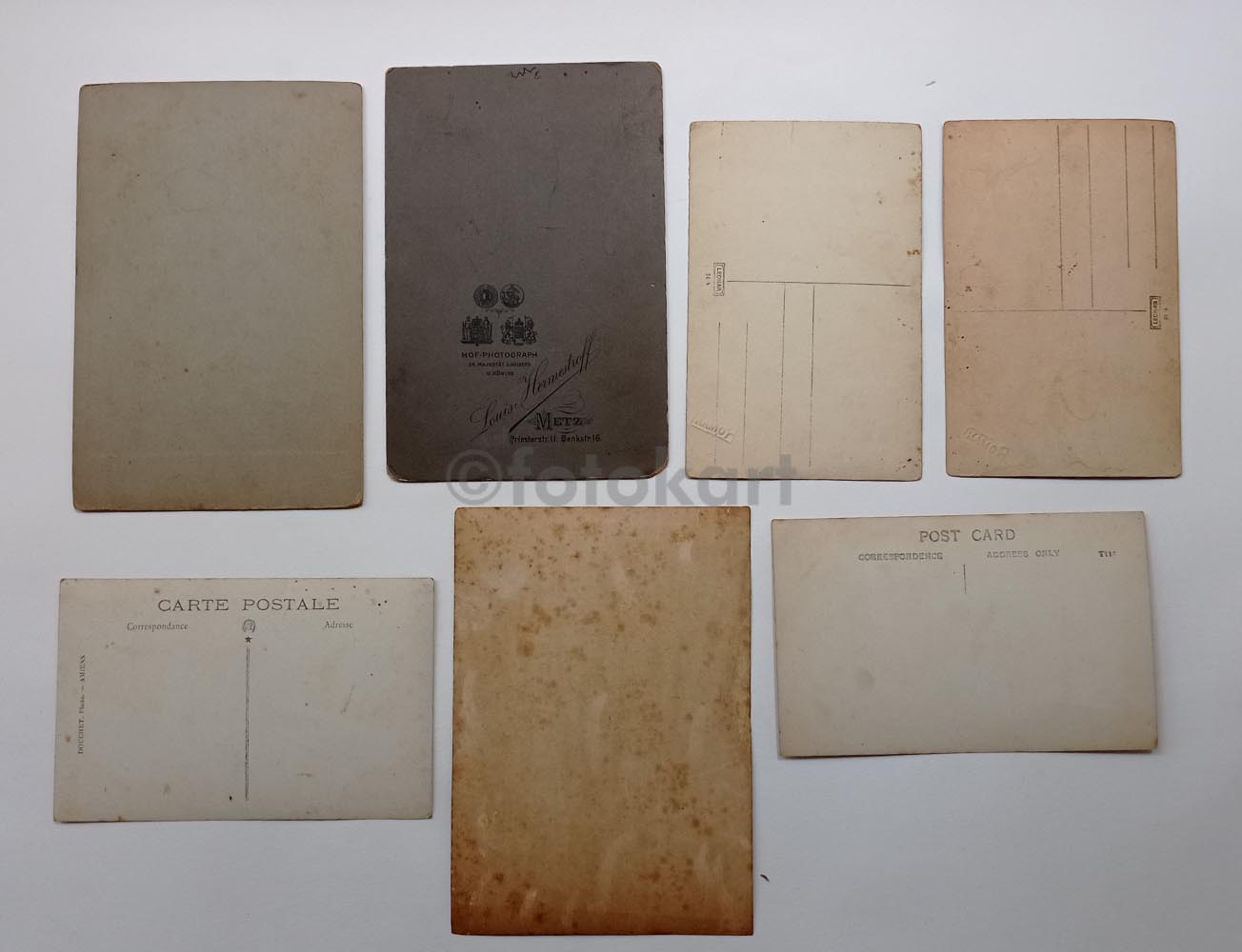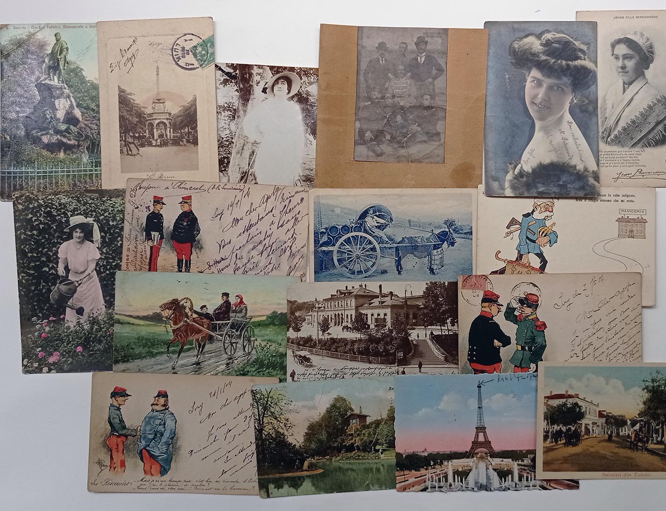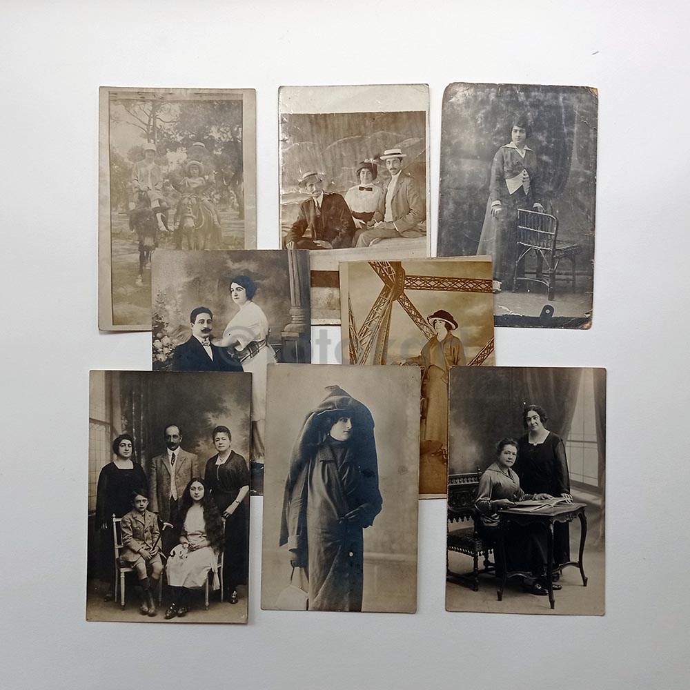 Aile albümünden çıkmış fotoğraf ve yazılı kartlar lotu, 32 adet belge.