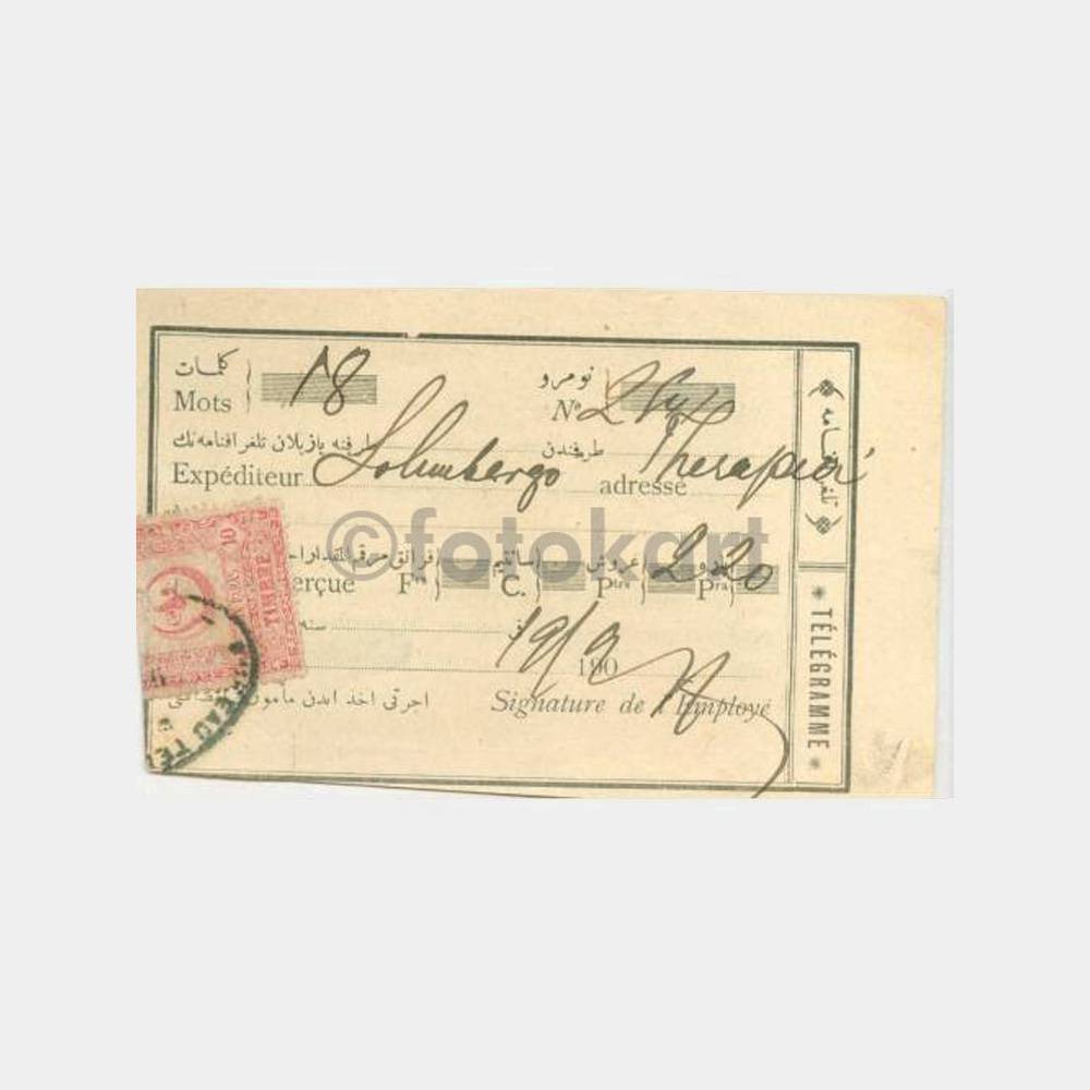 Pera -Beyoğlu telgraf bürosu alındı makbuzu, fiskal pullu