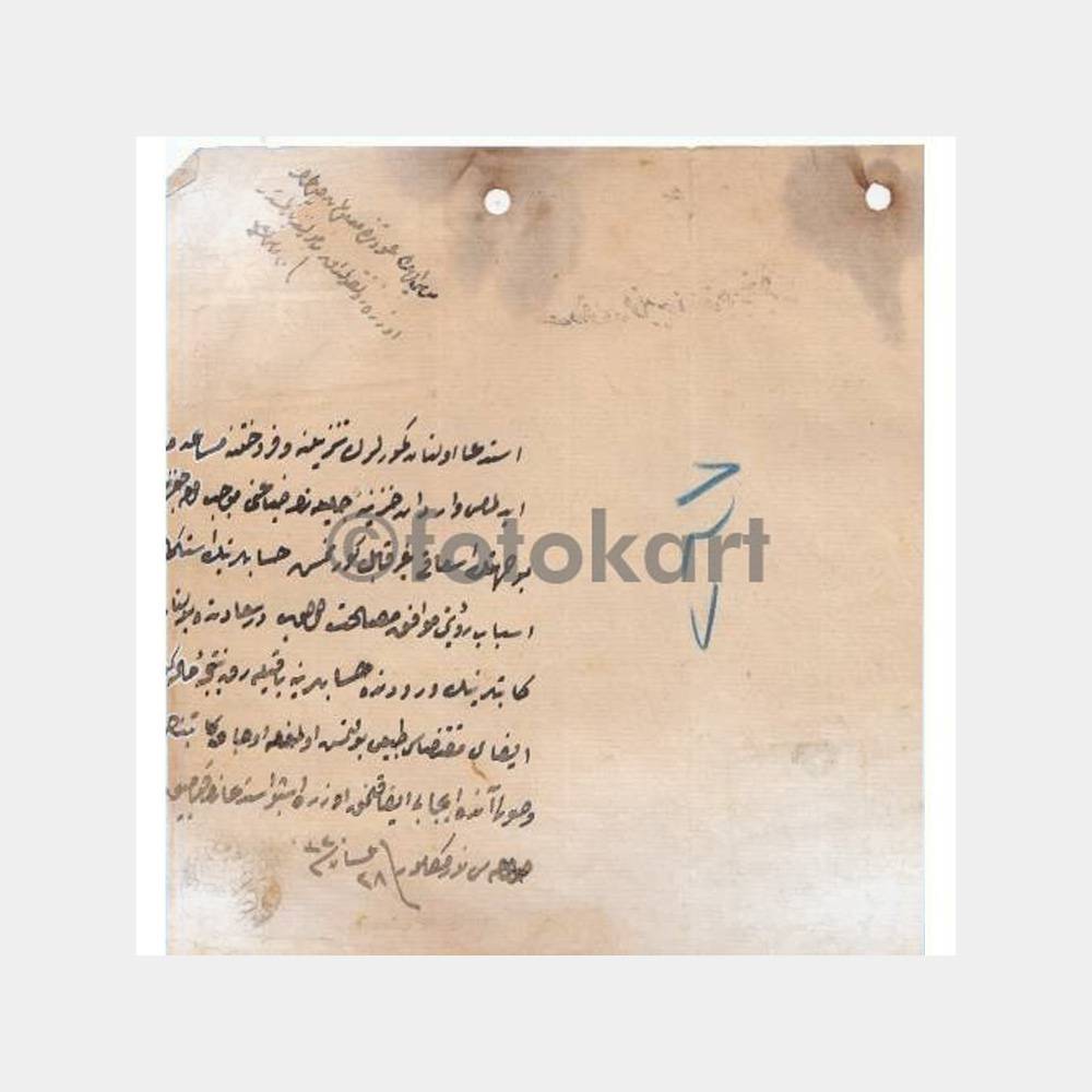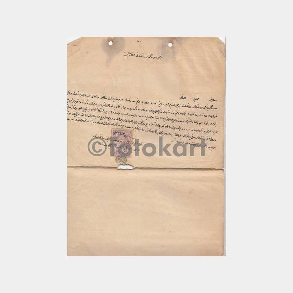 Haliyle eski osmanlıca arkalı önlü sayfa alt kısmında fiskal pullu var mühürün altına delik kısmı var durumda incelenecek