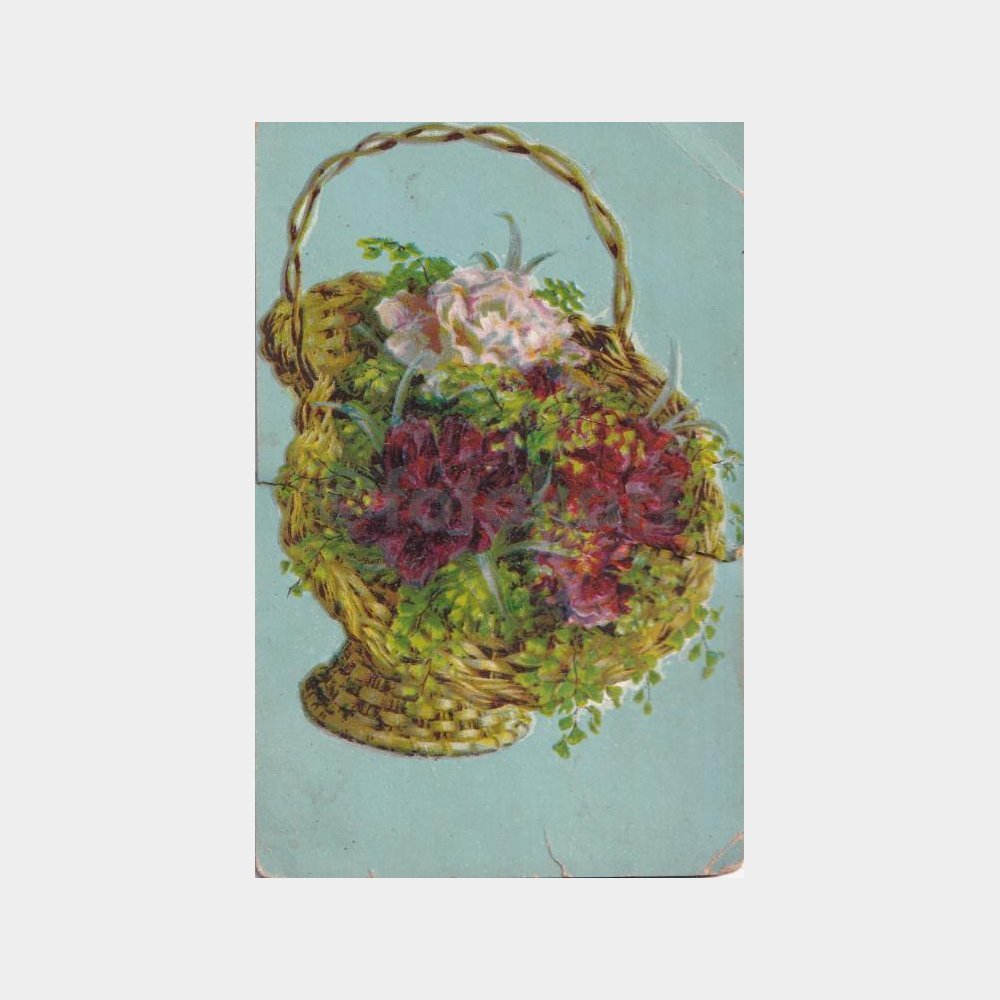 1908 Romanya Çıkışlı Fantezi Çiçek Sepeti Tebrik Kartı