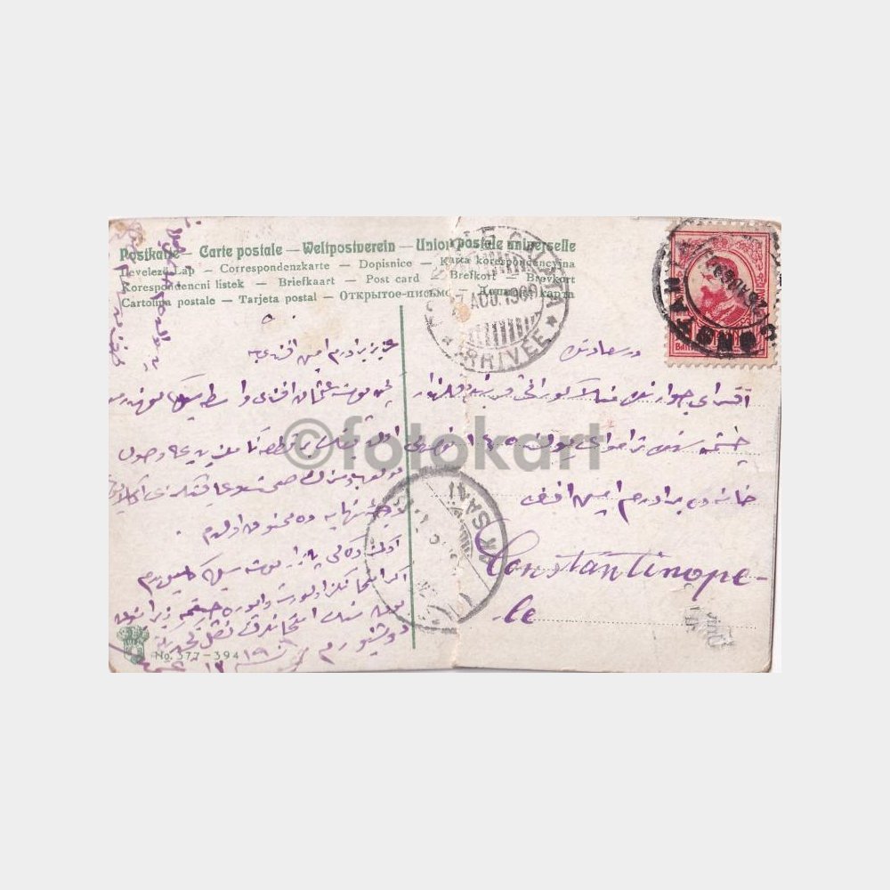 9 x 14 cm, arkası yazılı-ortadan tamirli.