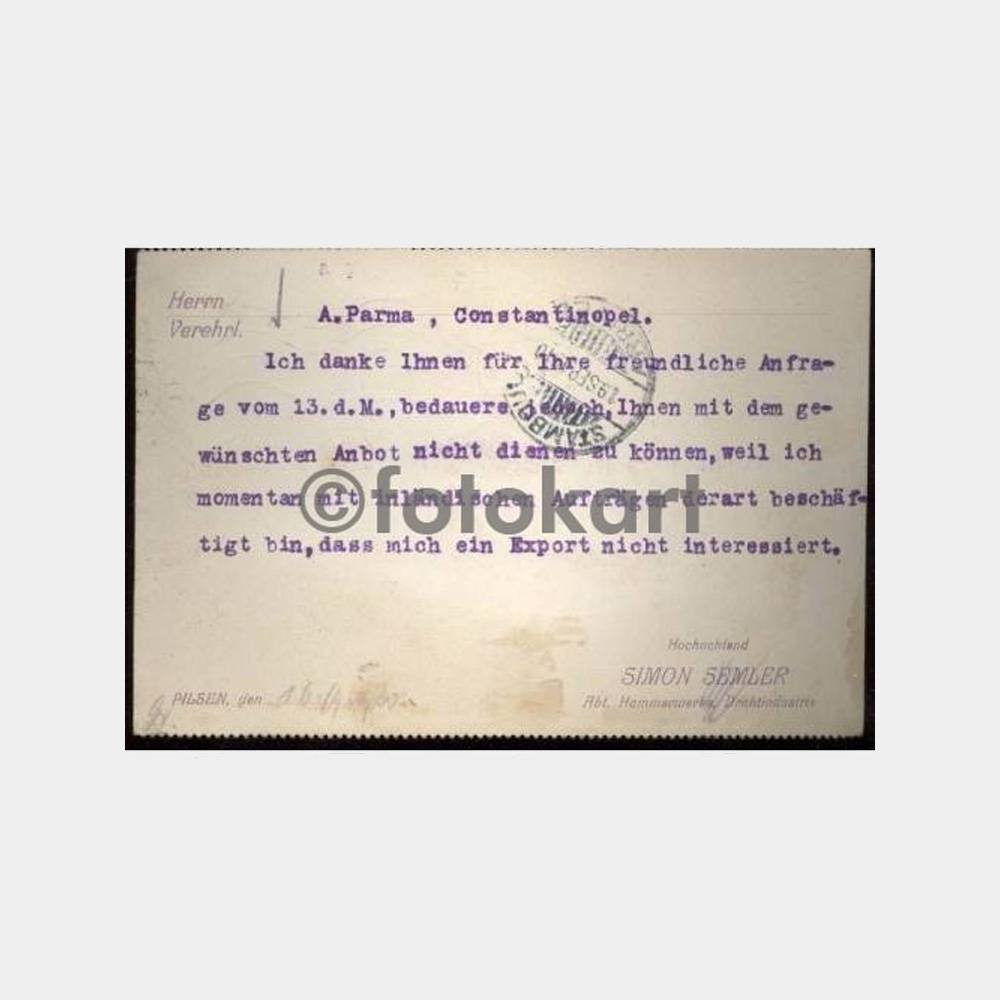 Pilsen kentinden gönderilmiş-Simon semler firmasından İstanbul Parma şirketine gönderilmiş
