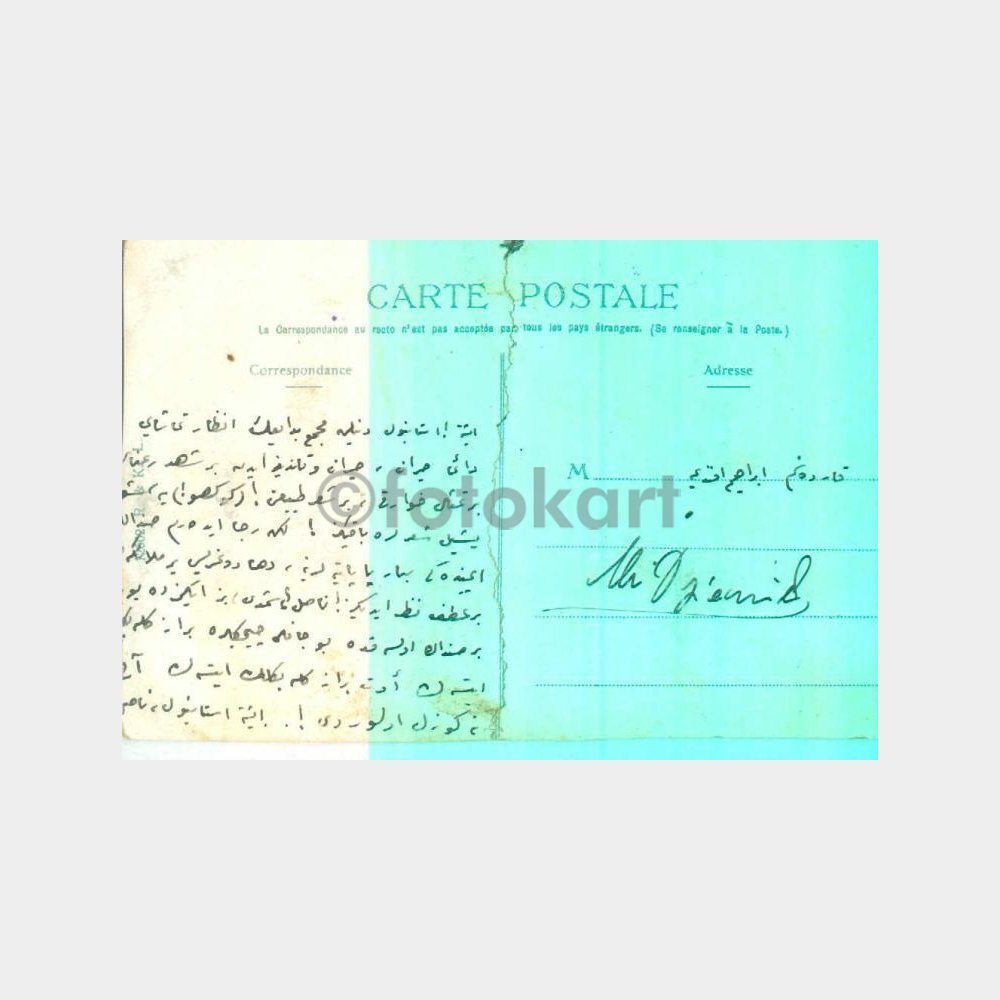 Arkası Eski Türkçe yazılı ortadan tamirli kartpostal.