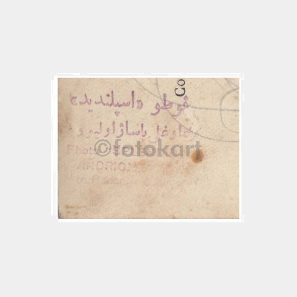 9 x 6 cm ebadında, arkası damgalı, Eski Türkçe yazılı fotoğraf.