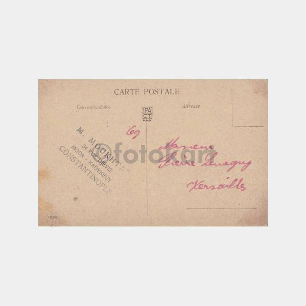 9 x 14 cm ebadında arkası yazılı yabancı baskısı nadir kartpostal M. Moukhtar Moda Kadıköy kase damgalı
