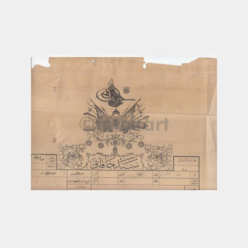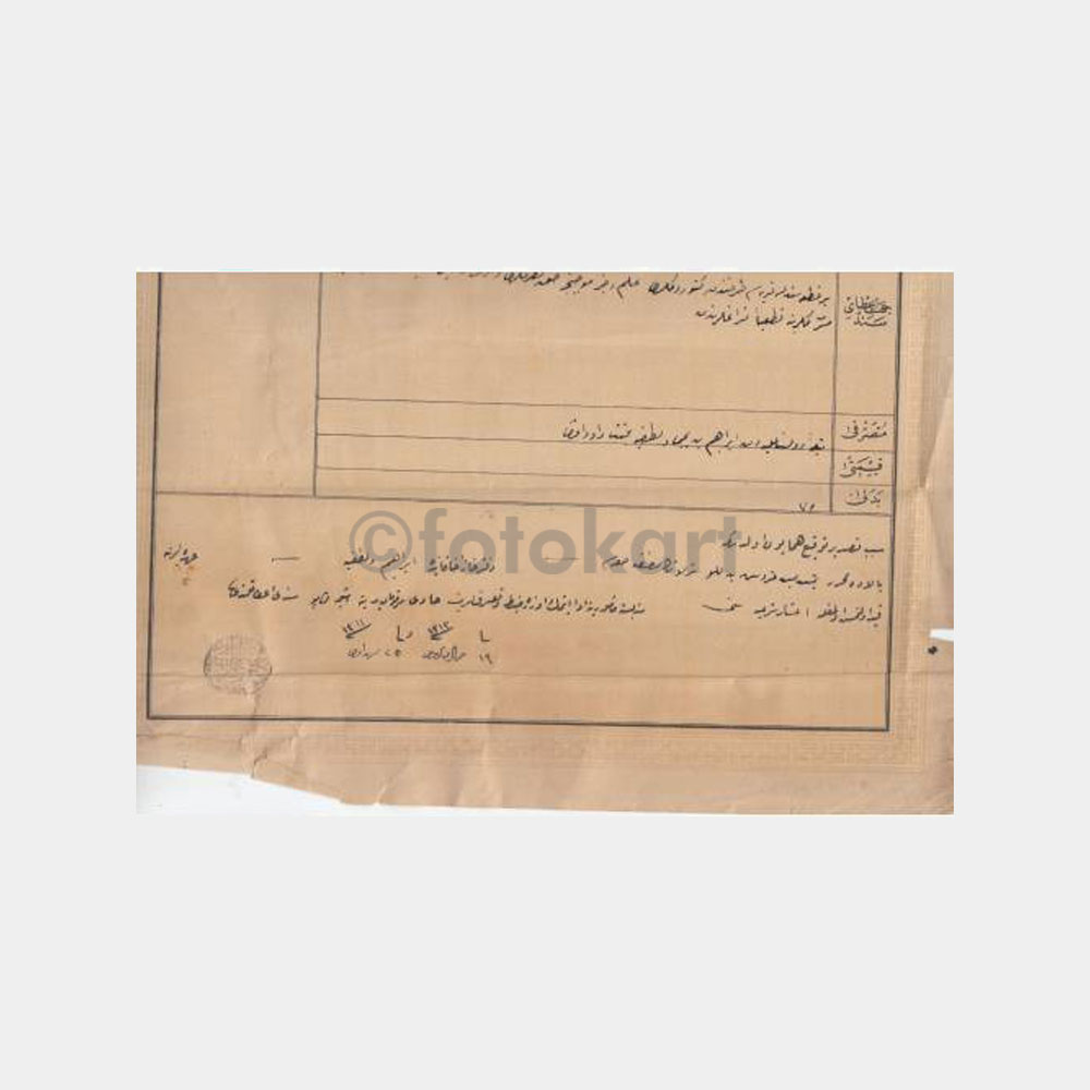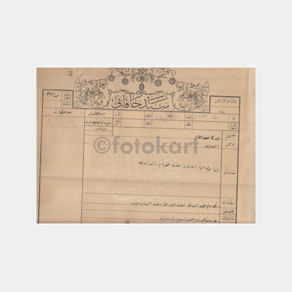 60 x 32 cm Osmanlı tapu belgesi, nadir, arkasında Rus konsolosluğu damgası var.