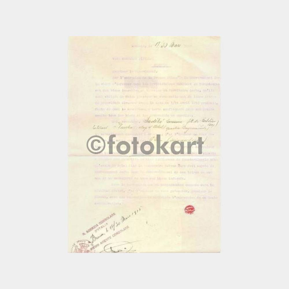 1915 bursa ile ilgili dilekçe belge, Üsküp’den gelen Sadıke ve Bahtiyar Bey ile ilgili matbu bir form üzerine doldurulmuş sırp hükümeti ile bir talep hakkında İtalya’nın Bursa konsolos şubesine iletilmiş