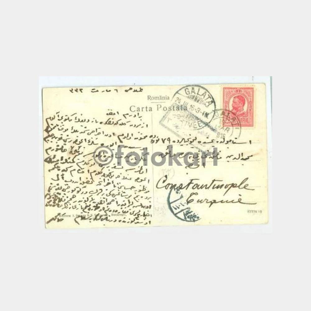 Arkasında Romanya Galatz/Galati (Tuna nehri üzerinde bir şehir) 19.03.1916 tarih damga ve İstanbul Galata 24.03.1916 varış ve sansür damgaları.