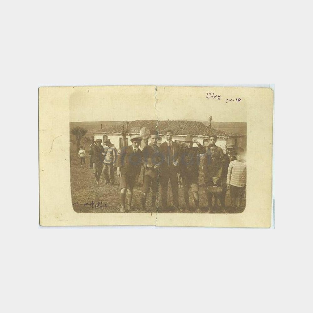 9 x 14 cm ebadında, arkası yazısız, ön yüzde yazısı var. Ortadan tamirli eski albüm fotoğraf.