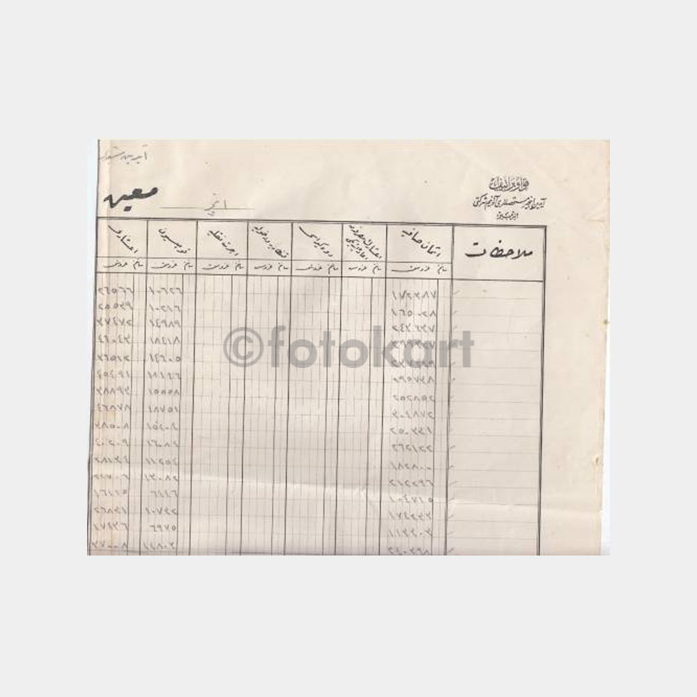 50 x 40 cm ebadında, koleksiyon amaçlı eski liste, çizelge, belge.