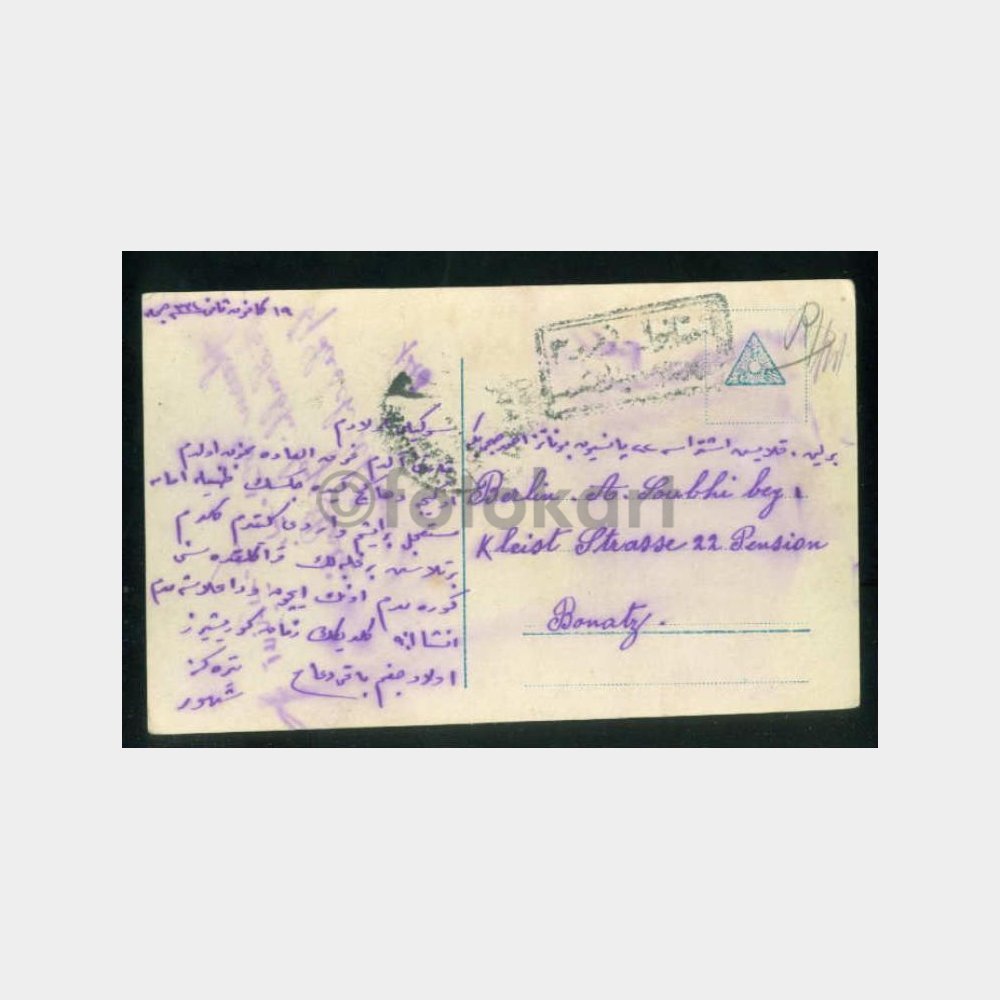 Arkası eski Türkçe yazılı, yabancı baskı fantazi tebrik kartı.