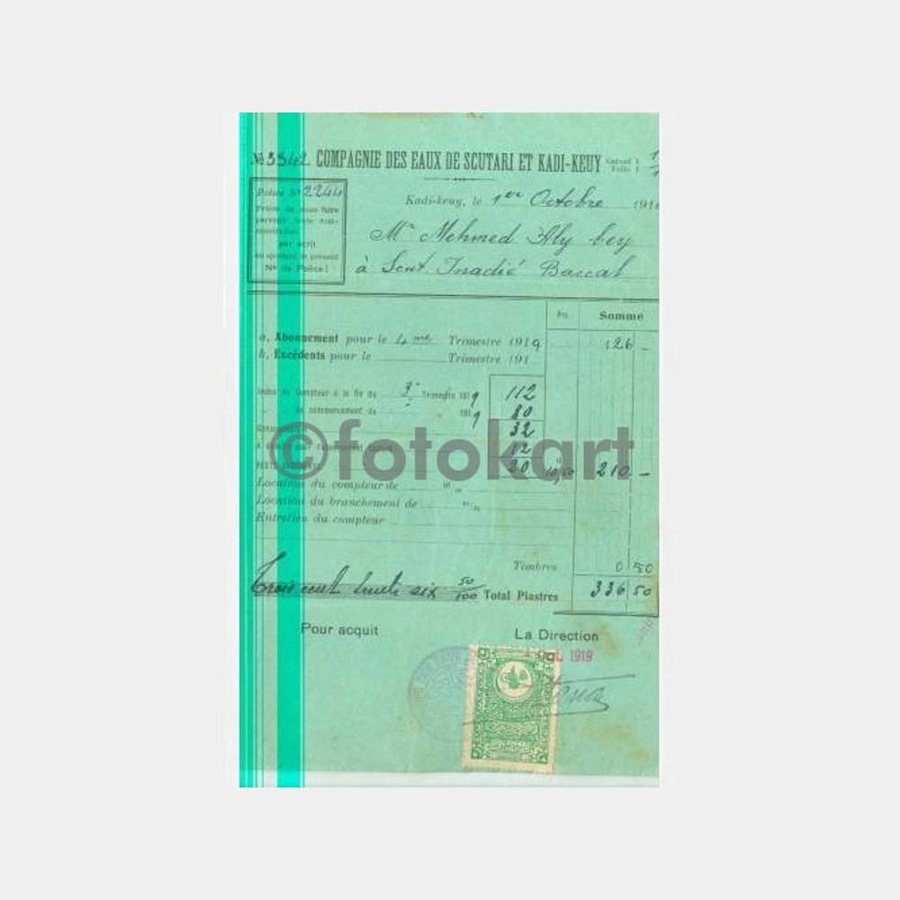 1919 Üsküdar ve Kadıköy Su Şirketi Faturası