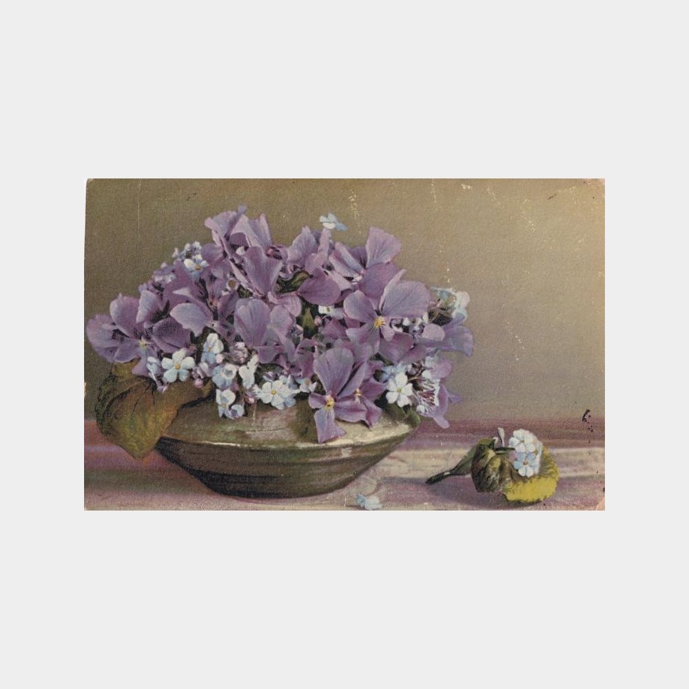 1920 Çiçek Vazosu Kartpostal (İsviçre Baskısı, Arkası Osmanlıca Yazılı-Posta Damgalı)