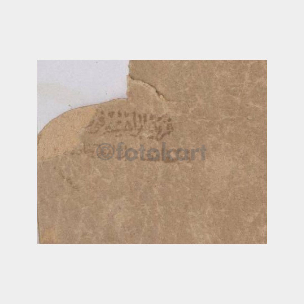 Yaklaşık 15 x 20 cm ebadında. Bir karton fotoğraftan kırılmak suretiyle belli bölümü kalmış, arkasında Ati Ali.. yazısı var. Eski türkçe baskısı.