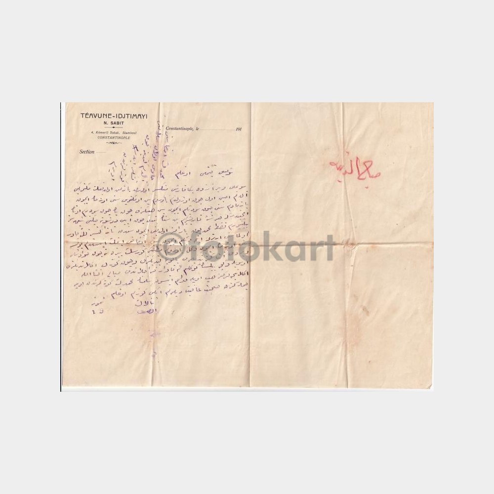 1920 Osmanlı Teavüne İçtimai Derneği – Sosyal Yardımlaşma Konulu Antetli Yazı