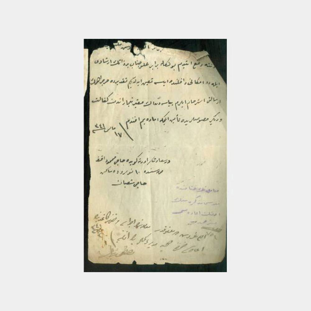 1921 Osmanlıca Dilekçe Belge