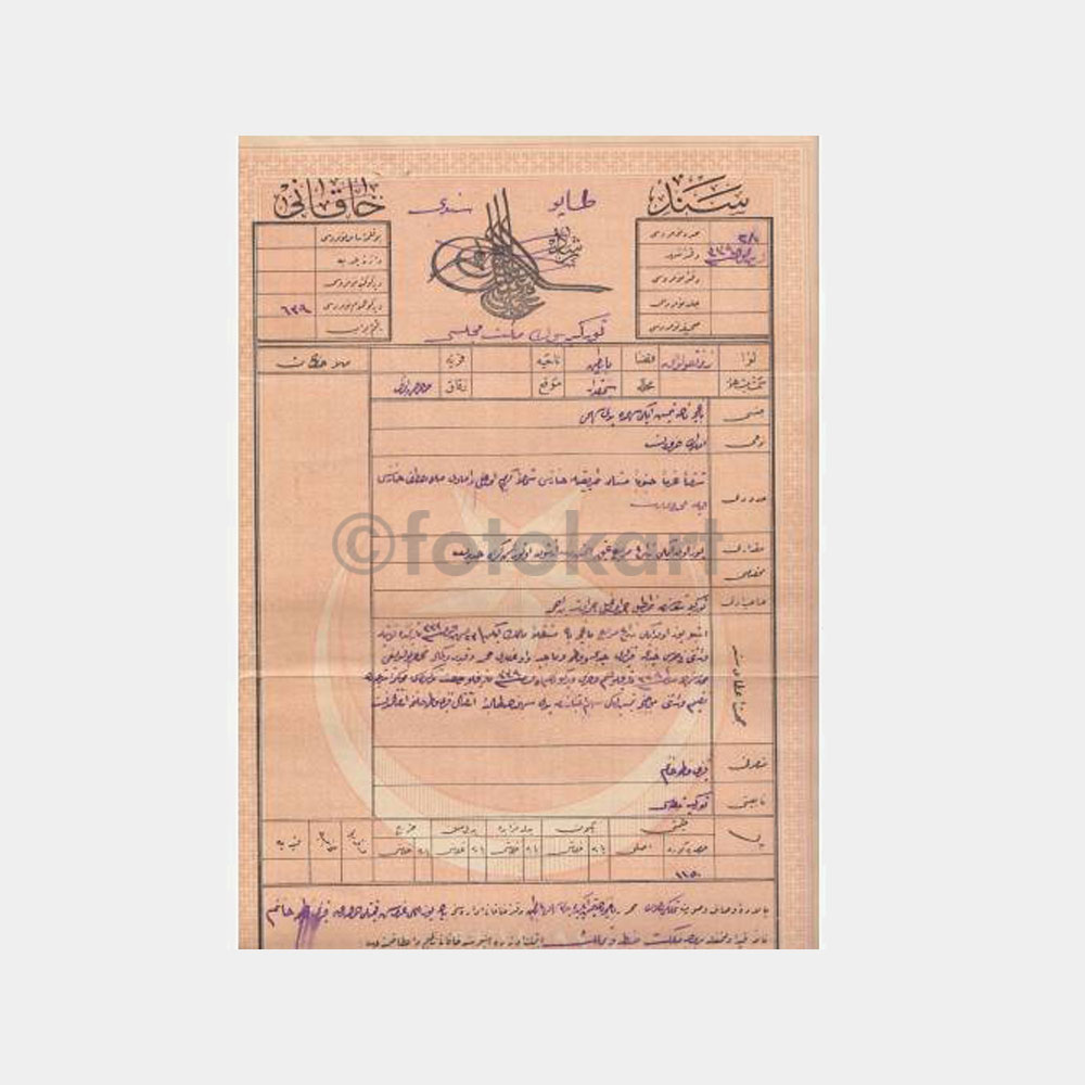 22 x 42  cm Osmanlı tapu belgesi, nadir .