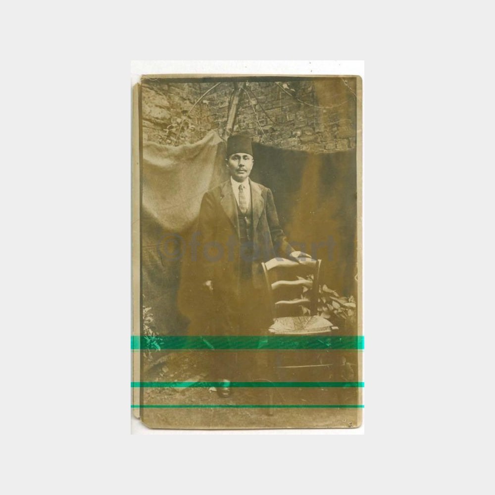 14 x 9 cm. ebadında, arkası Eski Türkçe yazılı fotoğraf.