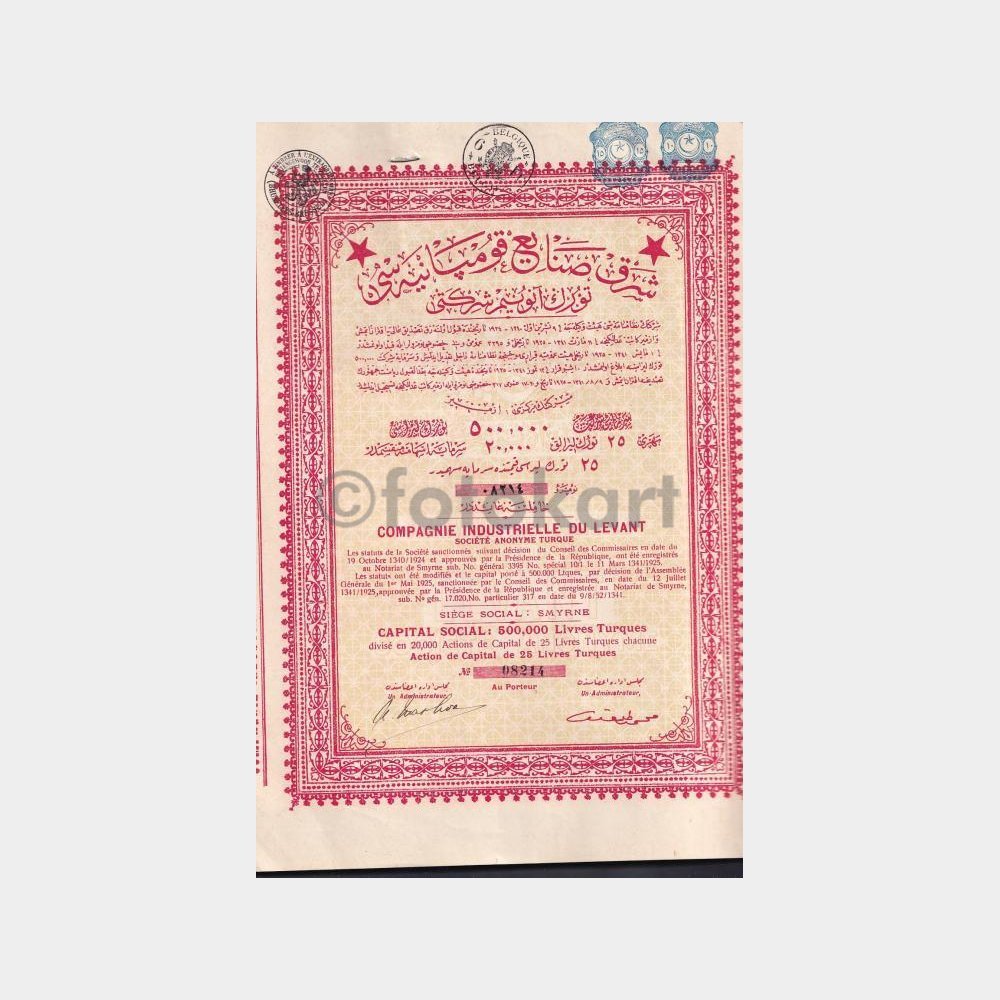 “1925 İzmir Levant Endüstri Kumpanyası Şirketi Hisse Senedi (8214 Nolu)” için yorum yapan ilk kişi siz olun