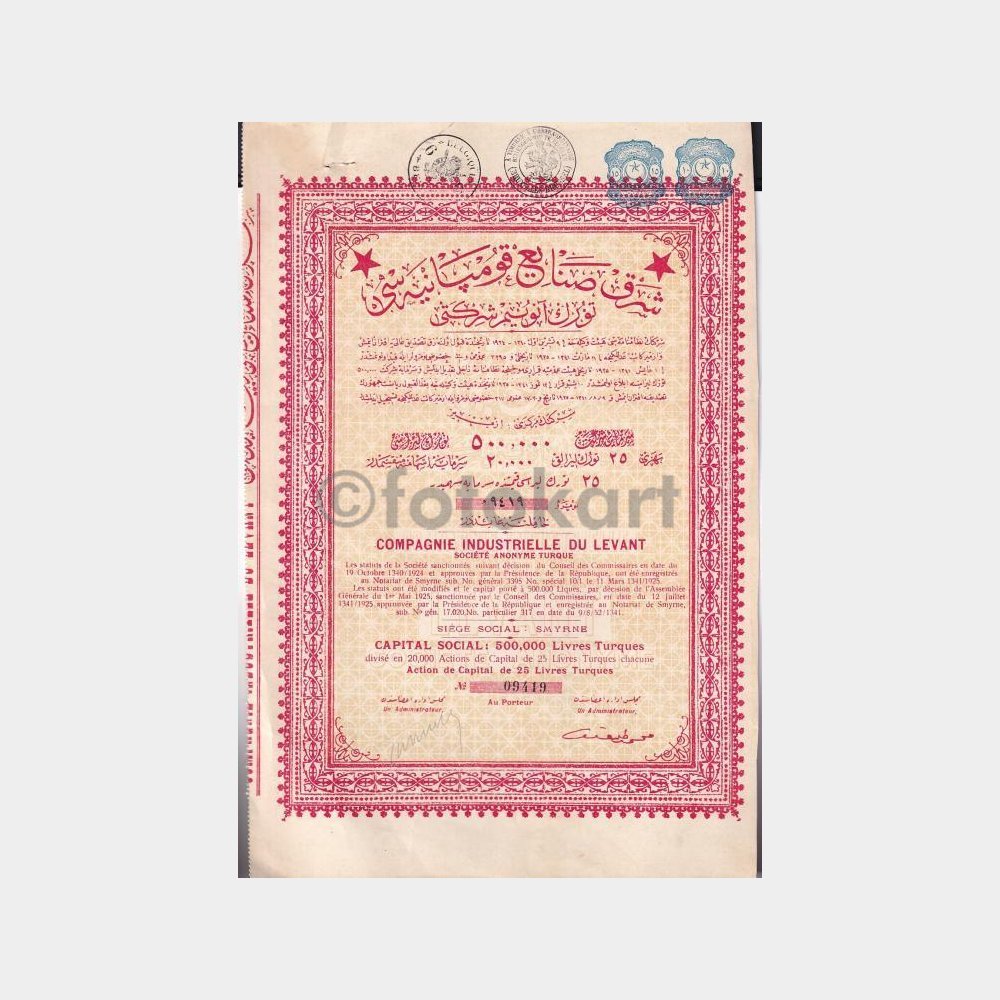 “1925 Levant Endüstri Kumpanyası Şirketi -İzmir- Hisse Senedi” için yorum yapan ilk kişi siz olun