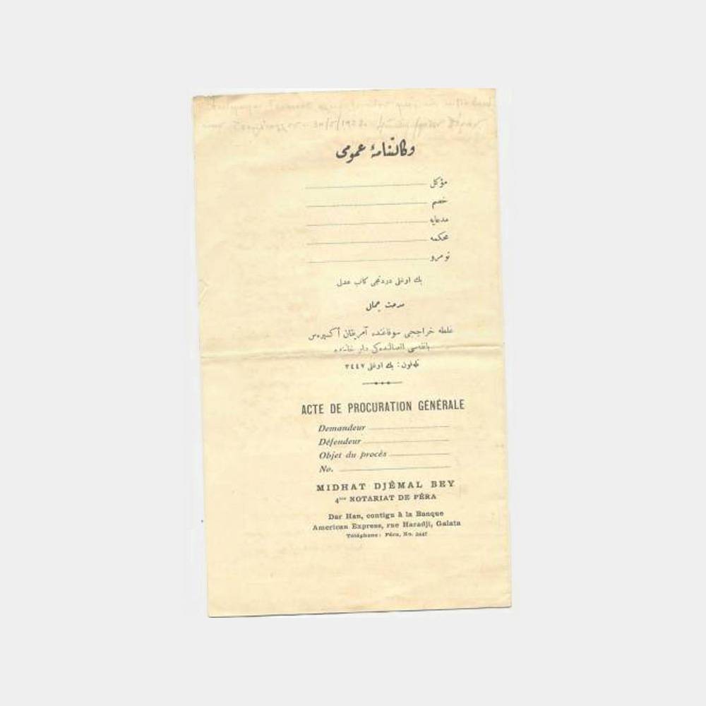 Ön kapakta Pera-Beyoğlu 4. Noteri Mithat Cemil bey (haraçcı sokak)