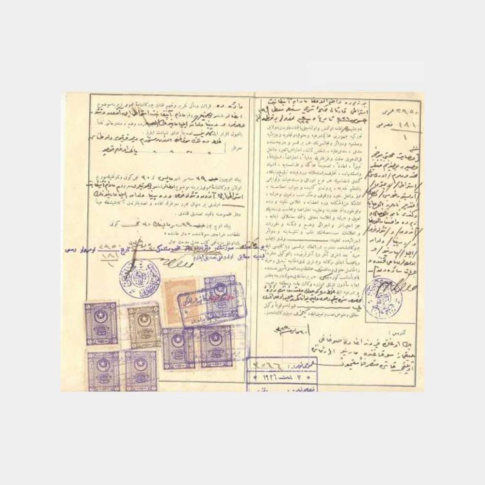 içinde anlaşma metni ve 8 adet fiskal damgalı pullar