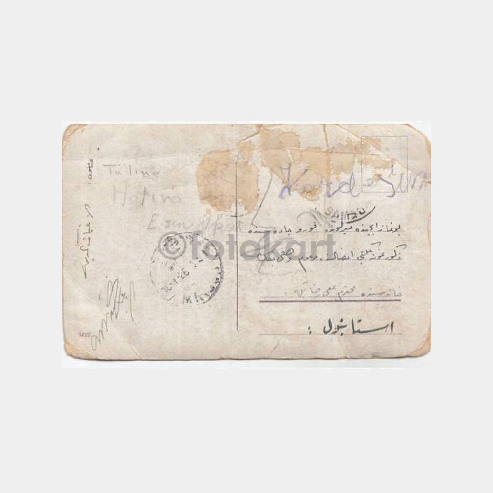 9 x 14 cm ebadında, koleksiyon amaçlı, arkası yazılı tebrik kartı. Kondüsyon haliyle kırık izleri var. Samsun ve okunamayan 2. bir damgası var.