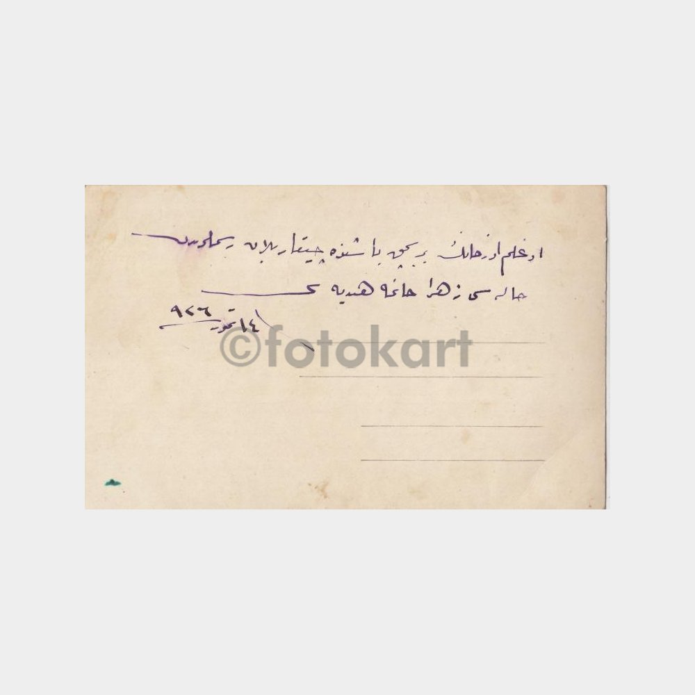 14 x 9 cm ebadında, arkası yazılı belgesel fotoğraf. Stüdyo arka plan görseli.