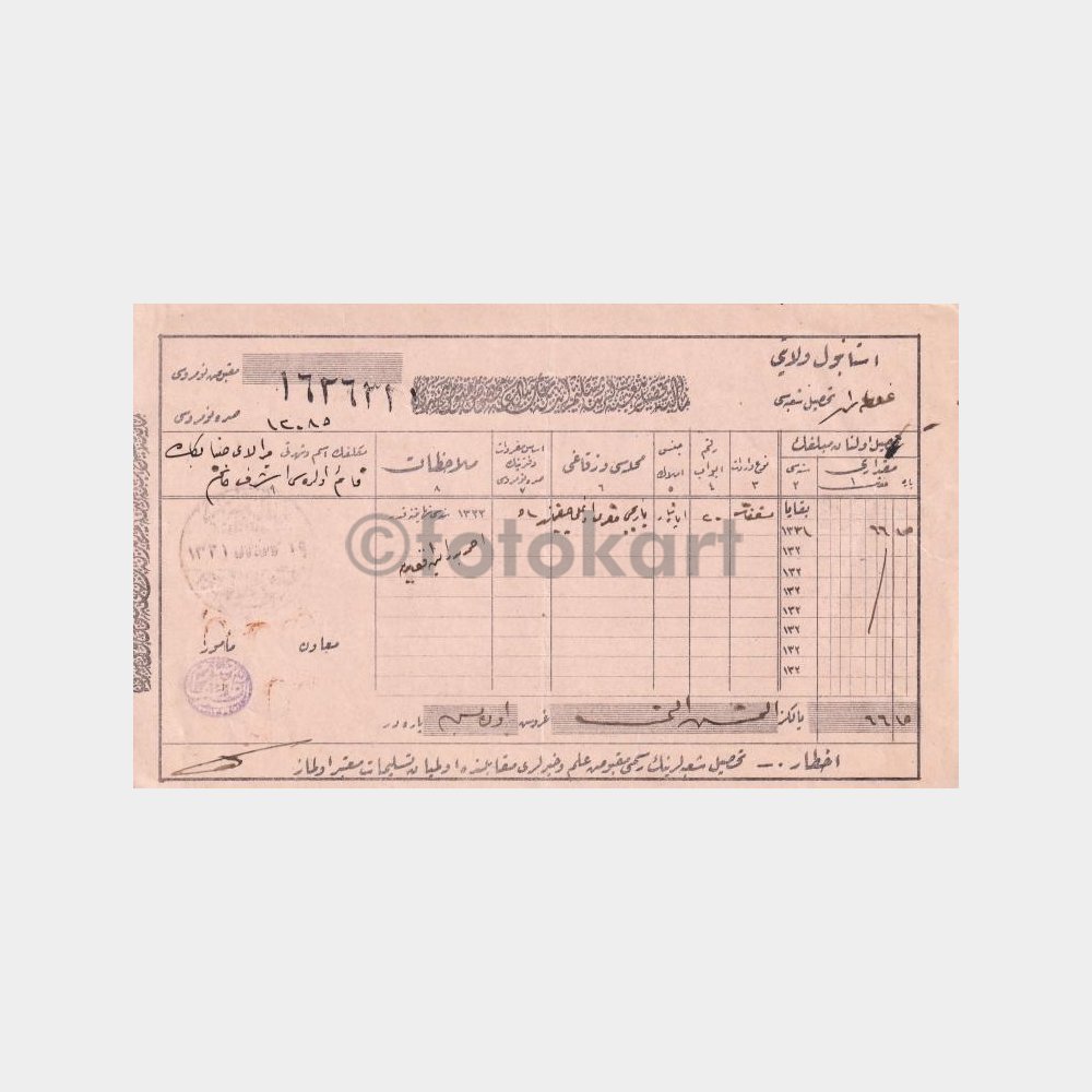 18 x 10 cm ebadında, damgalı makbuz.