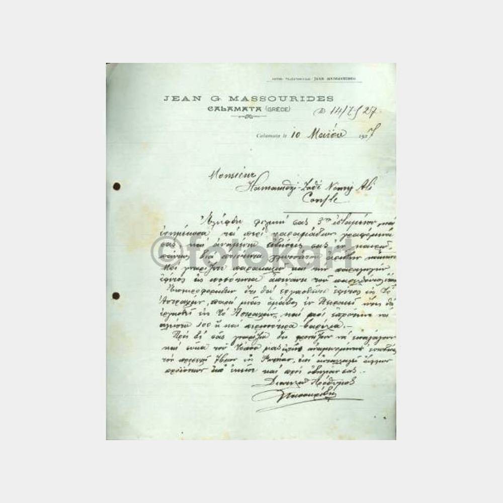14. 7. 1927 Yunanistan Kalamata,  firma ticari yazışması