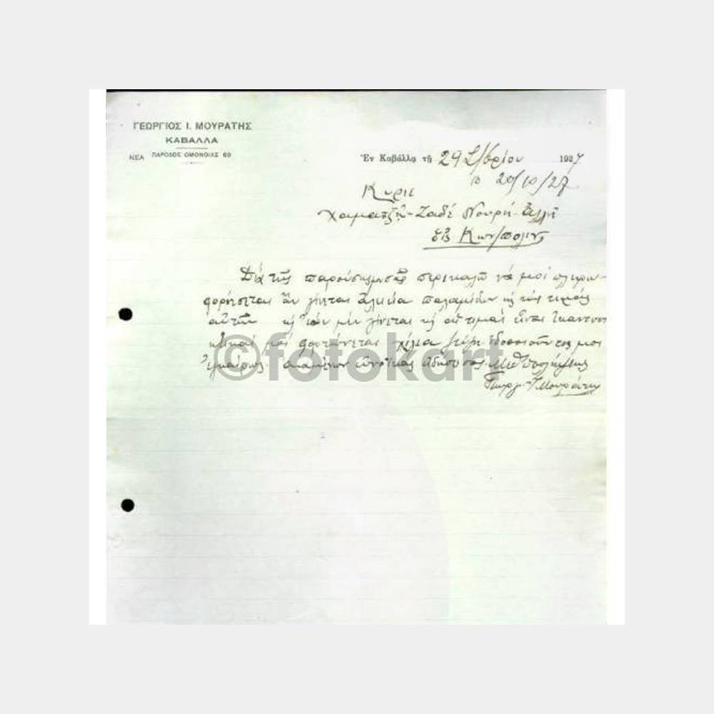1927 Yunanistan Hamamcızade Kavala Ticari Yazı