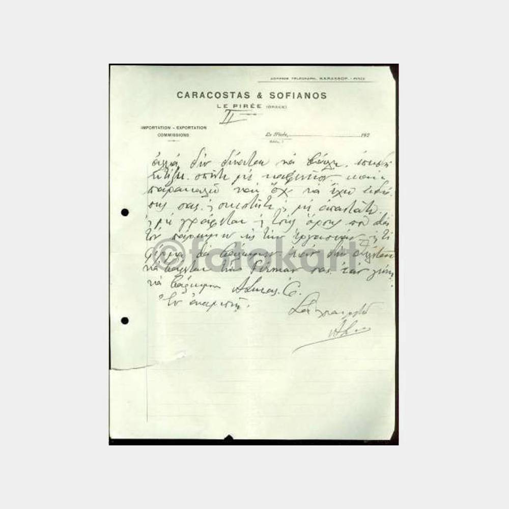 1927 Yunanistan Hamamcızade Pire Ticari Yazı
