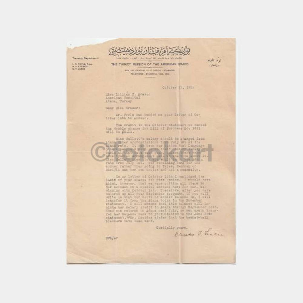 1928 Adana Hastane Amerikan Board Başlıklı Yazısı
