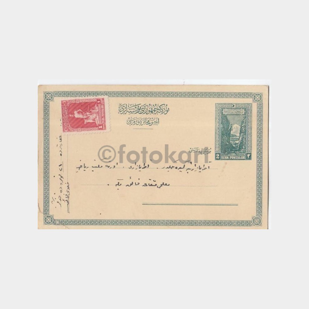 Arkası yazılı, alt köşe kırık haliyle posta kart, antiye 2 kr.luk.
