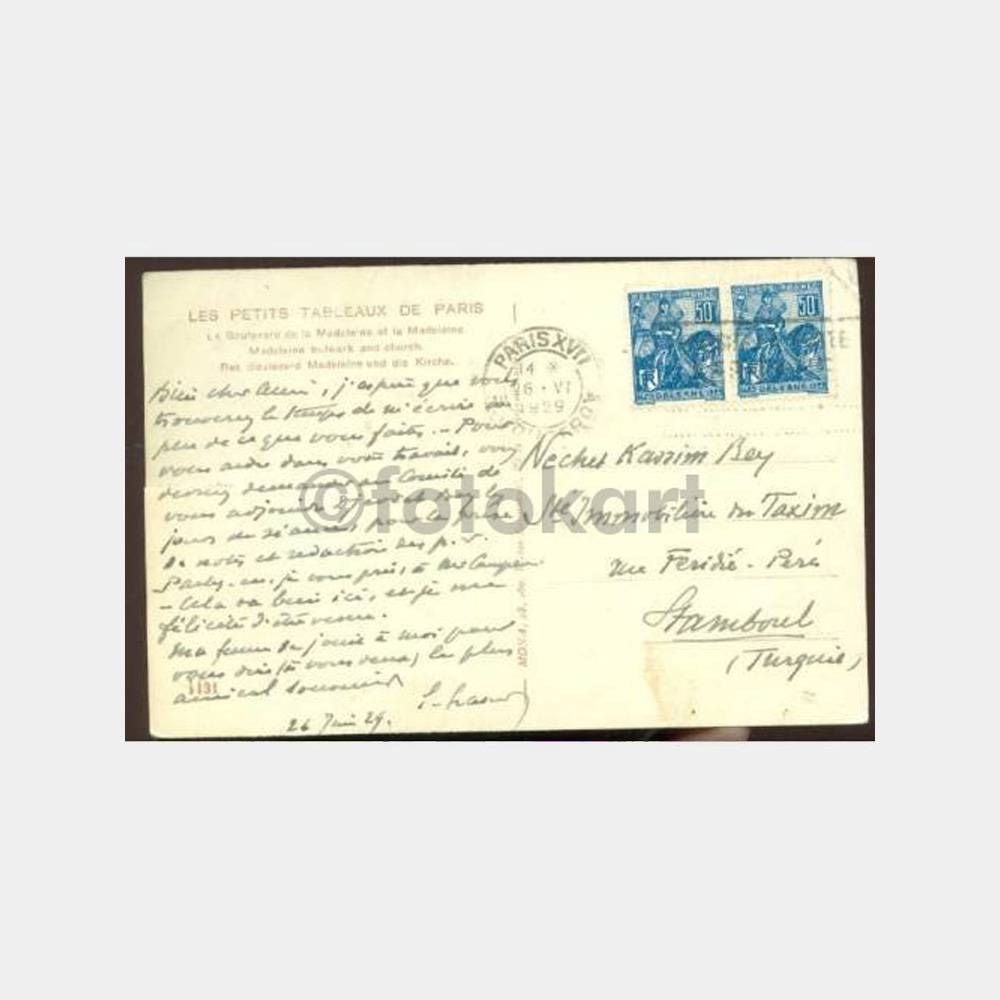 1929 Beyoğlu Emlakçı Neşet Kazım Bey – Paris Kartpostal