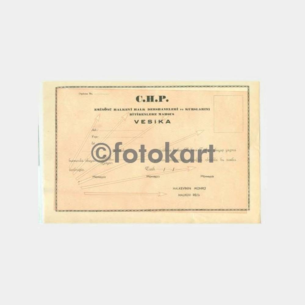Çok temiz, CHP Eminönü halkevi kurs vesikası boş durumda