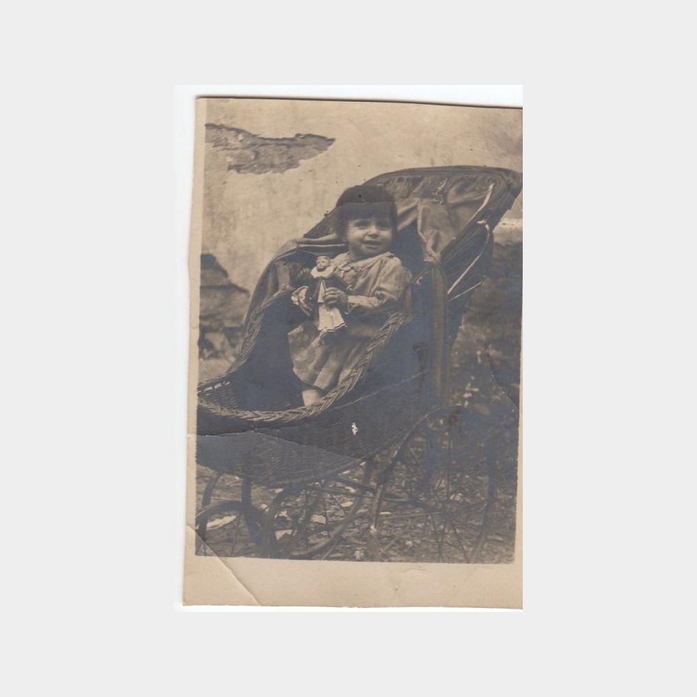 1929 Oyuncak Bebekli Çocuk Arabasında Konulu Fotoğraf